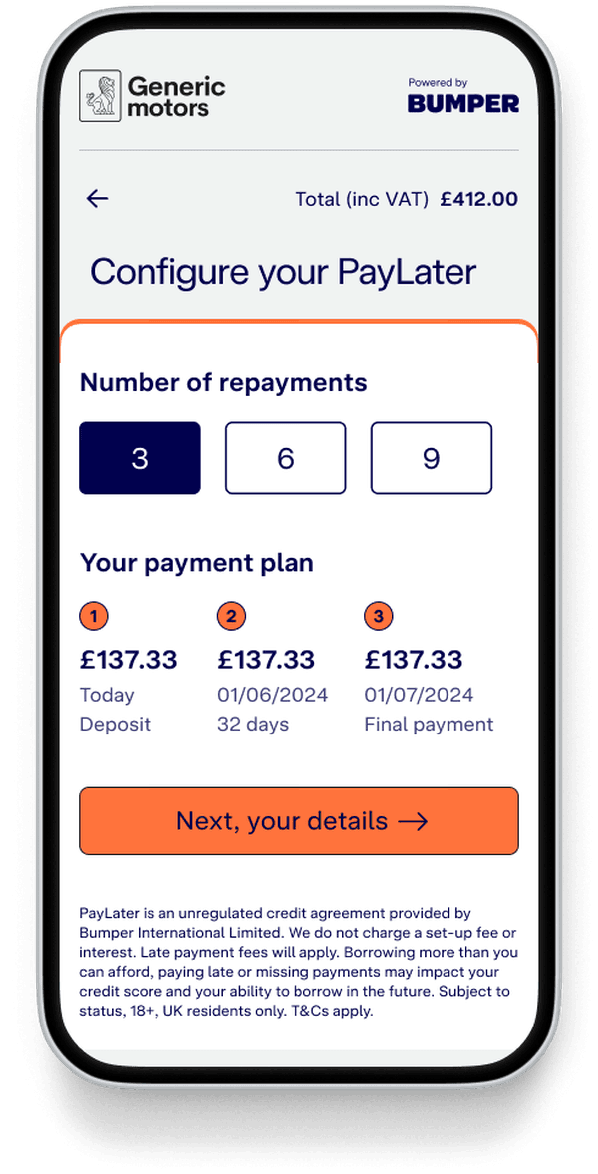 If approved, we’ll send you a unique Bumper code to pass on to your chosen partner.